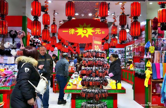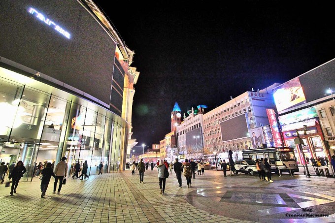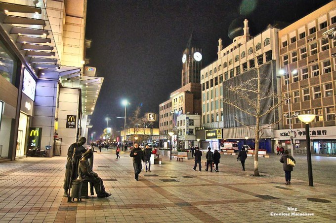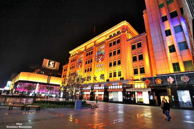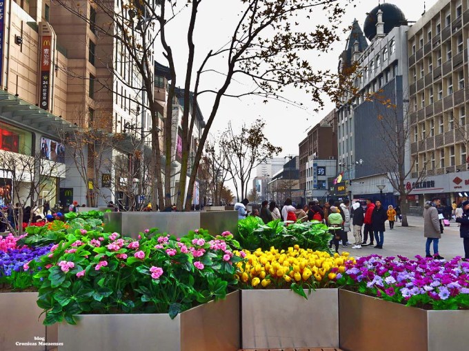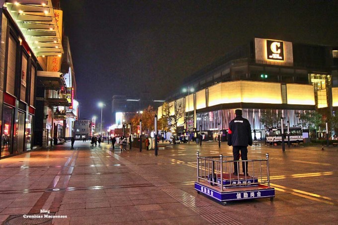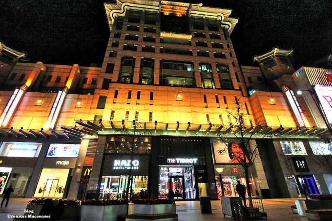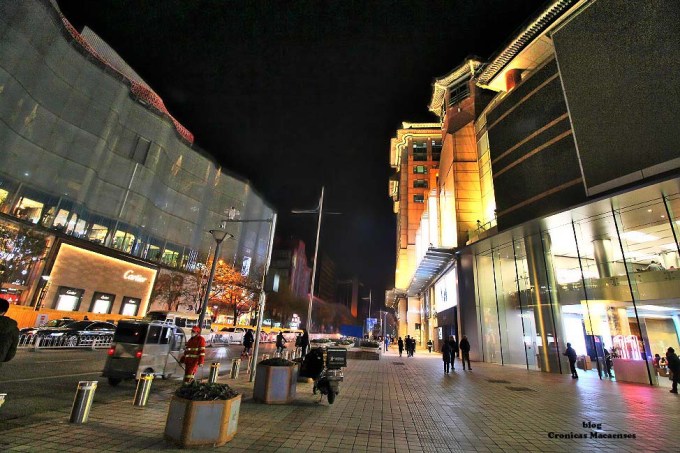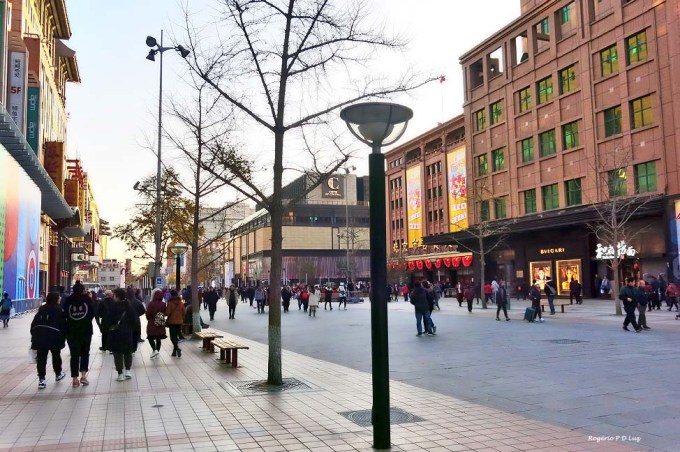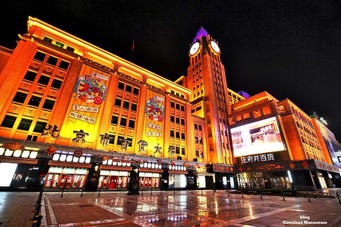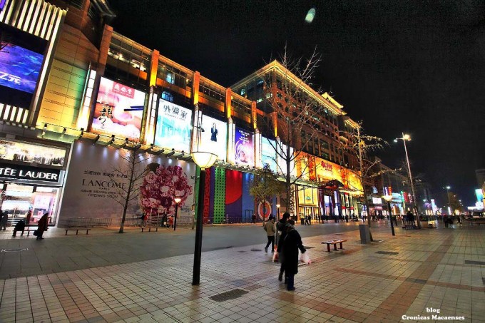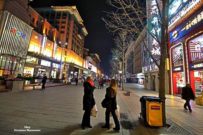 (Wikipédia) Wangfujing (chinês: 王府井; pinyin: Wángfǔjǐng; lit. ‘Poço da Mansão do Príncipe‘) é uma rua comercial em Beijing/Pequim, China, localizada no distrito de Dongcheng. A maior parte da área principal é para pedestres. Desde meados da Dinastia Ming, existem atividades comerciais na área. Na Dinastia Qing, dez propriedades aristocráticas e residência de princesas foram construídas aqui, logo depois quando um poço cheio de água doce foi descoberto, dando à rua o nome de “Wang Fu” (residência principesca), “Jing” (poço).