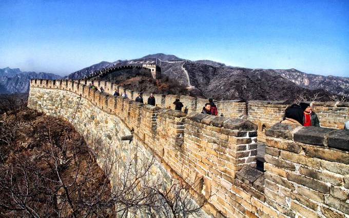 Este trecho da muralha restaurado de Mutianyu, com uma série de torres de observação, data de 1368. Foi erguido por cima das fundações da fortificação construída pela dinastia do Qi do Norte.