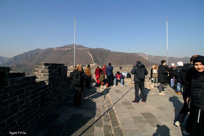 Pode-se perceber pelas fotos que esta seção da Grande Muralha é tranquila com menos turistas, além de ser menos íngreme facilitando a caminhada sem escaladas difíceis por degraus que pude vivenciar em Badaling.