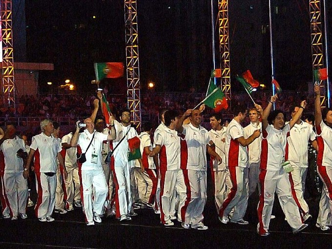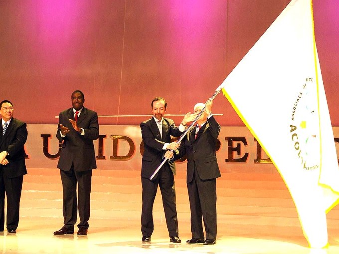 A Bandeira Olímpica é passada para a próxima cidade-sede – lisboa – em portugal no ano de 2009