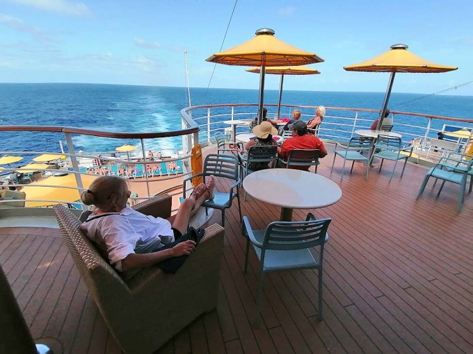 No deck superior à da piscina na popa do navio, você tem visão desta bela e relaxante paisagem.