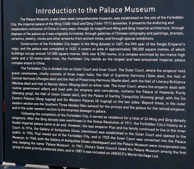 Na região metropolitana de Beijing (Pequim), no mínimo, duas atrações turísticas são imperdíveis e roteiros obrigatórios mesmo que a estadia seja curta. São: a Grande Muralha e a Cidade Proibida que nesta postagem vai ser mostrado o Pátio Externo que servia para cerimoniais dentro das suas muralhas, com fotos detalhadas e explicativas. Noutra postagem, visitaremos o Pátio Interno que compreende as instalações do imperador e familiares.