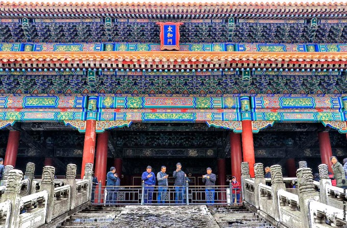 O Portão da Harmonia Suprema que precede a Galeria de mesmo nome, de dois beirais e 24 metros de altura, passou a ser ocupado em banquetes na Dinastia Qing (1644-1912).