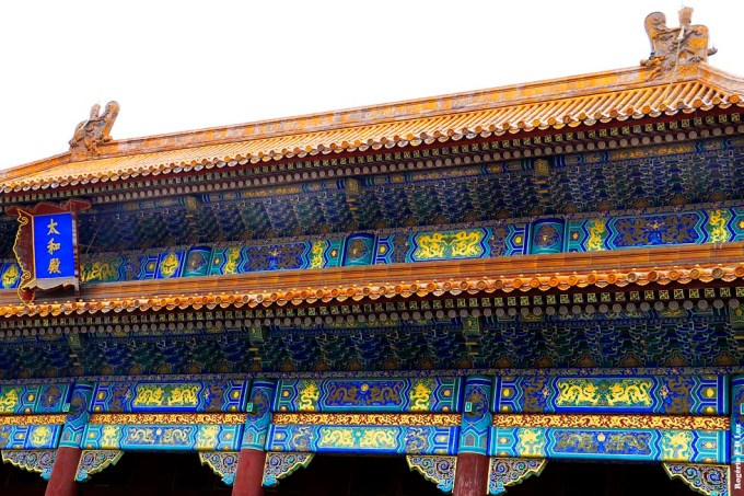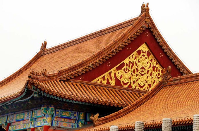 • o Amarelo, como a cor do Imperador. Desta forma, quase todos os telhados da Cidade Proibida ostentam telhas amarelas vidradas. Existem apenas duas exceções.