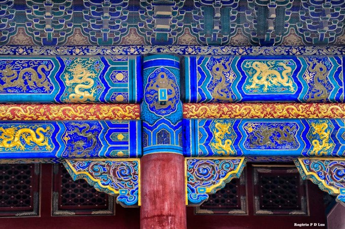Rica decoração do teto da edificação do Portão da Harmonia Suprema: