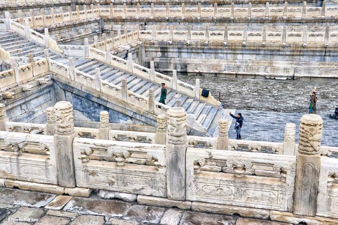 Nas fotos seguintes, a grande Praça da Galeria da Suprema Harmonia. A partir desta praça eleva-se um terraço em três camadas de mármore. No topo deste terraço erguem-se três galerias, o foco do complexo palatino