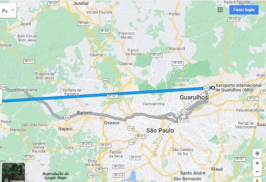Os mapas, extraídos do Google Maps, a aeronave voa por cima dos municípios do Estado de São Paulo: e Guarulhos, Santana de Parnaíba, Sorocaba, Araçoiaba da Serra, Alambari, Itapetininga, Campina do Monte Alegre. Já sobrevoando o Estado do Paraná, os municípios de Wenceslau Braz, Rosário do Ivaí, Serranópolis do Iguaçu (Ivaí), a reserva florestal do Parque Nacional do Iguaçu e finalmente o renovado Aeroporto Internacional de Foz de Iguaçu (IGU) que está bonito.