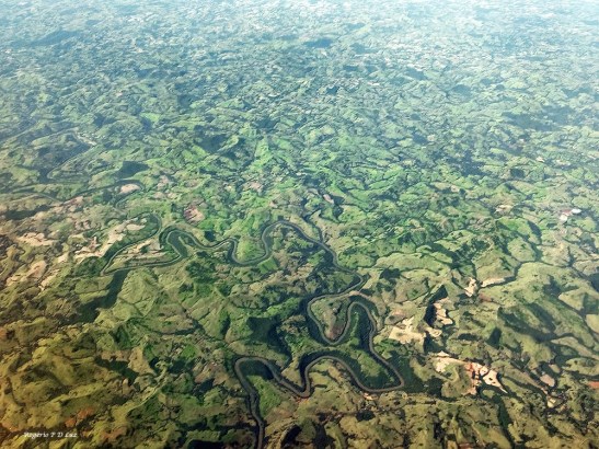 A caminho de Foz de Iguaçu, a cidade das Cataratas, uma das 7 Maravilhas do Mundo, pela empresa aérea Gol que teve a partida do Aeroporto Internacional de São Paulo/Guarulhos (GRU), também popularmente conhecido como Aeroporto de Cumbica, o maior do Brasil, da América do Sul e um dos maiores do mundo, foram feitas esta série de fotografias de vistas aéreas, assim divididas em viagem de ida e de volta a São Paulo.