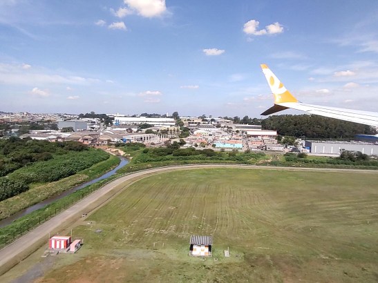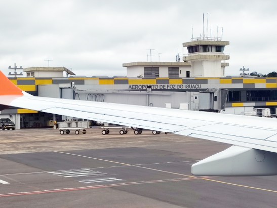 Para quem se interessar em ter essa visão, especialmente com vista das Cataratas de Iguaçu, na chegada, escolha o banco da esquerda da aeronave, que no caso foi após a asa esquerda, como se percebe. Na volta a São Paulo, o mesmo banco do mesmo lado foi ocupado.