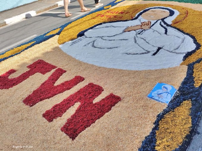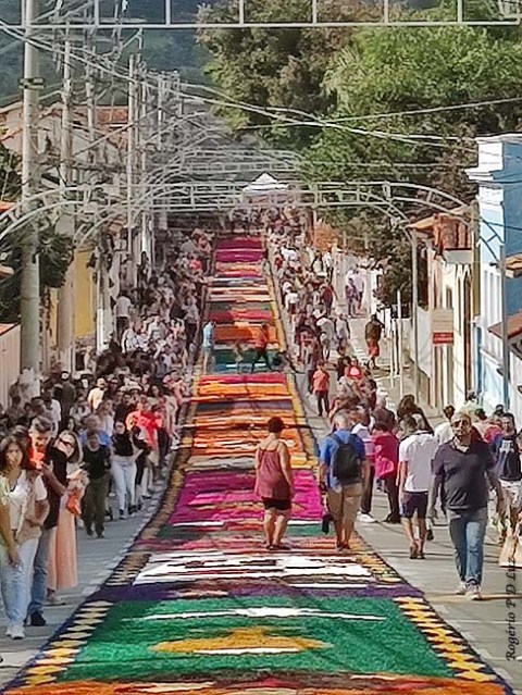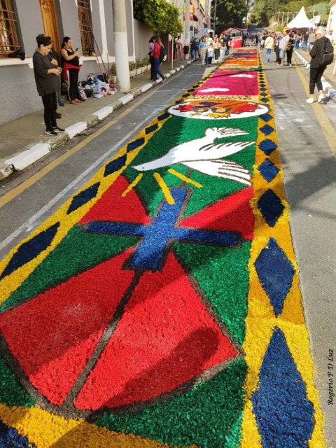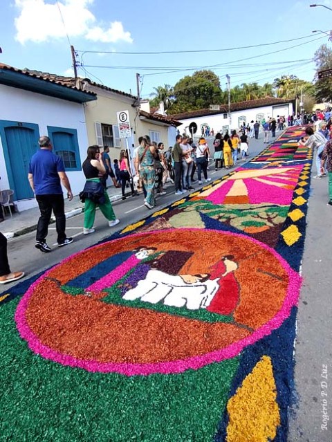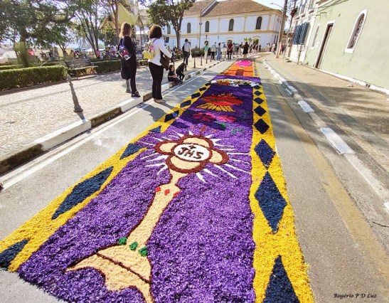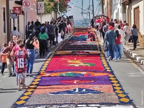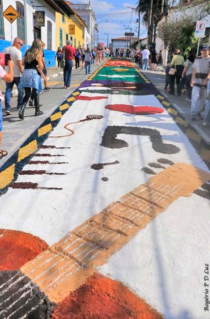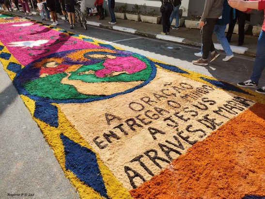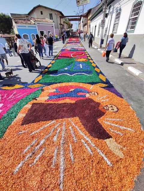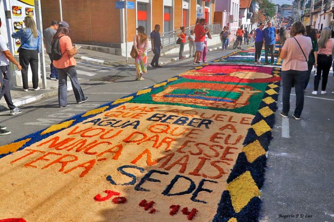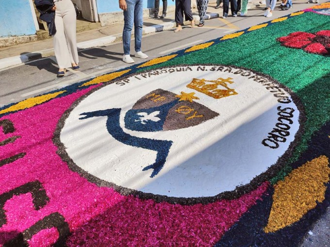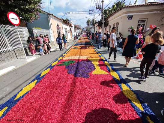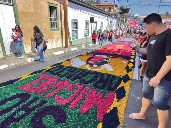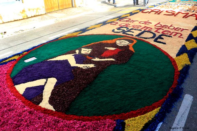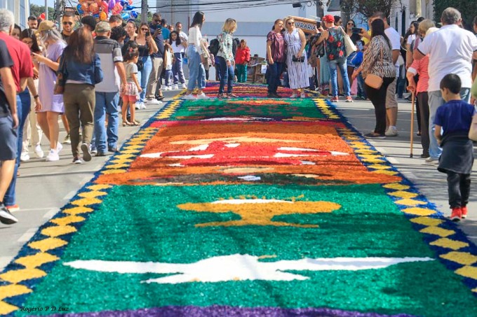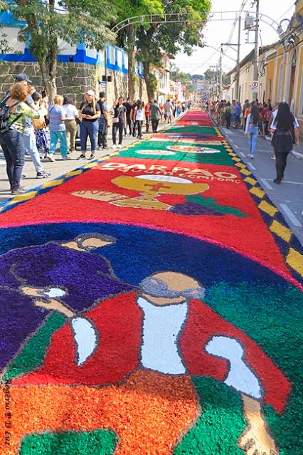 O tema deste ano foi: “A eucaristia e as obras de misericórdia“, dividido em 60 quadros no tapete de 850 metros de extensão montado no centro histórico. Informa-se que mais de mil voluntários, membros de comunidades católicas, desde cedo, participaram da sua montagem com imagens veneradas no catolicismo.