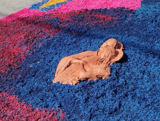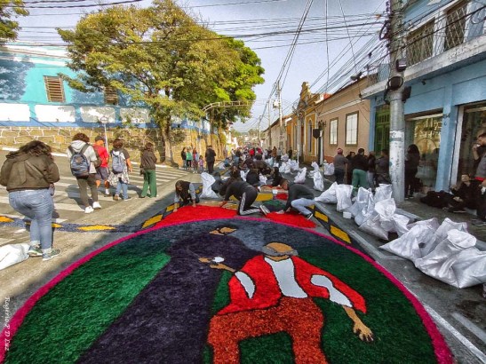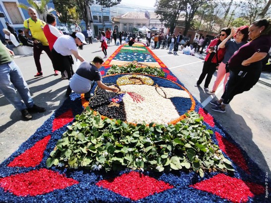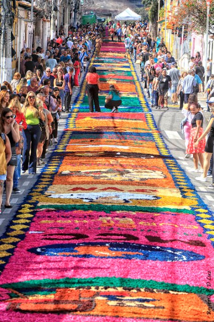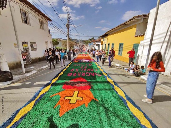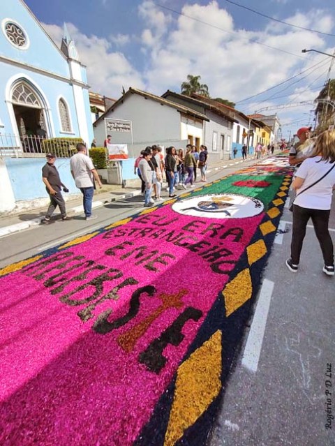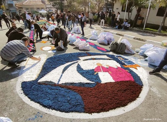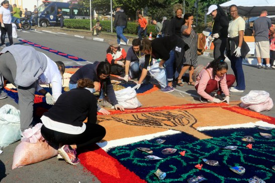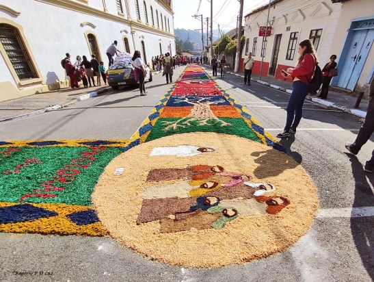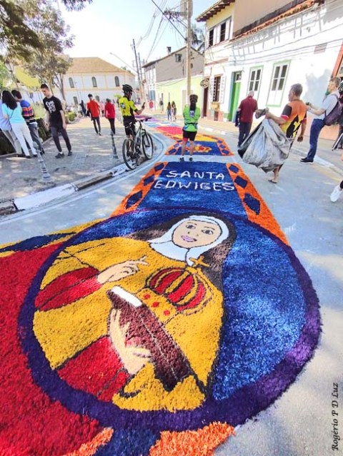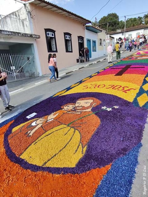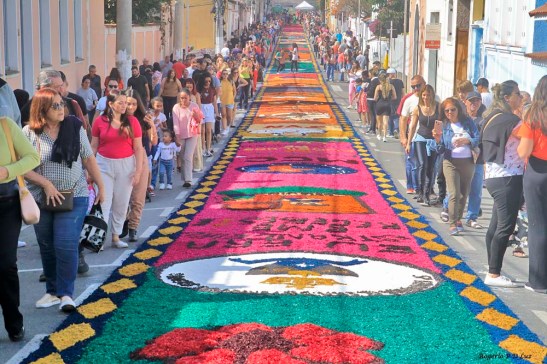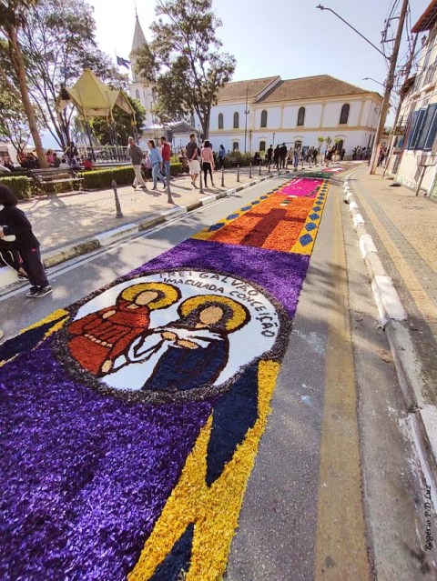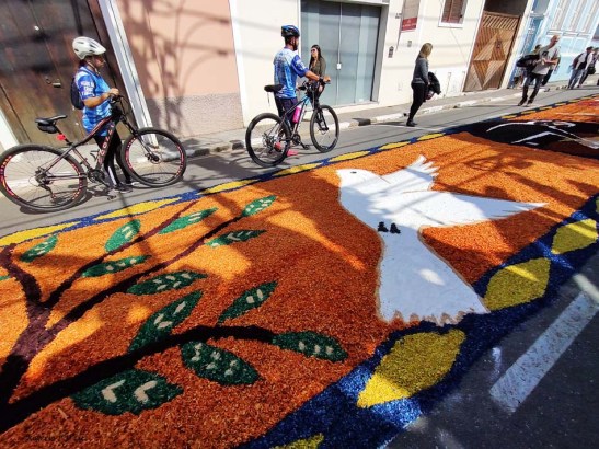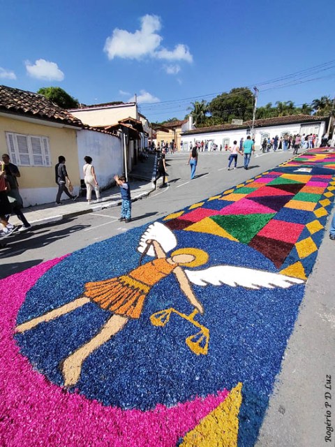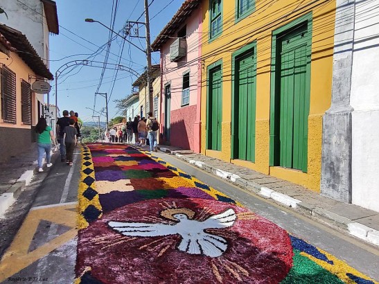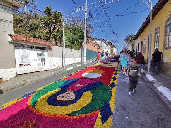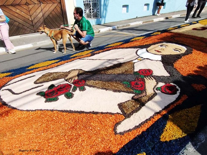 O tema deste ano foi: “A eucaristia e as obras de misericórdia“, dividido em 60 quadros no tapete de 850 metros de extensão montado no centro histórico. Informa-se que mais de mil voluntários, membros de comunidades católicas, desde cedo, participaram da sua montagem com imagens veneradas no catolicismo.