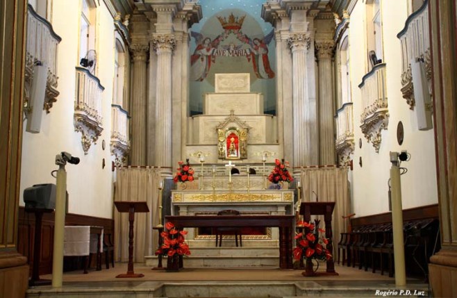 O altar-mor e o retábulo foram esculpidos em mármore de Carrara, na Itália. As figuras, também em mármore que encimam o altar, representam as virtudes. Os púlpitos e as talhas ornamentadas foram esculpidos em bom cedro da Bahia, encomendados por Frei Monte Carmelo, bem como as seis imagens que se acham nos nichos da nave central.