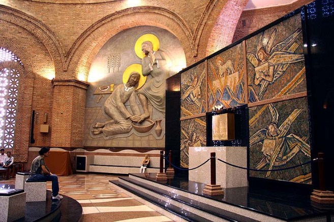 A grande cúpula da Capela é toda em tons de ouro: a luz, Cristo Luz, Pentecostes, a plenitude Pascal. Ela nos indica que Deus é a luz plena e que esse grande vazio é espaço para o invisível presente. “José é o justo, o silencioso, aquele que permite Deus ser”, como explica Cláudio Pastro.