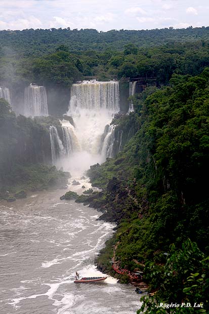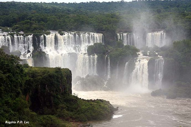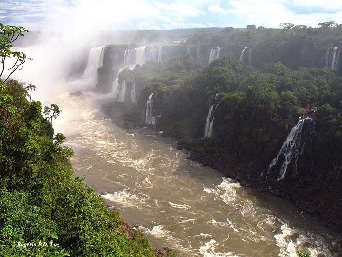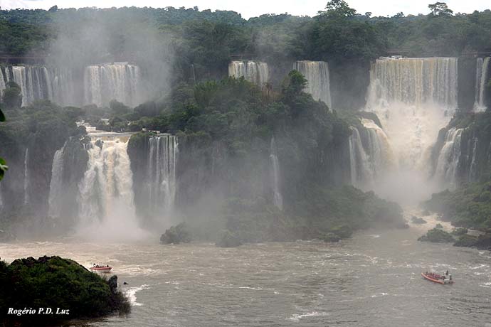 Esta postagem mostra imagens das Cataratas vista do lado brasileiro, a que mais recebe visitas, pois nem todos se propõem a atravessar a fronteira ou este roteiro normalmente não é incluído nos pacotes turísticos vendidos no Brasil. É difícil dizer qual roteiro é o mais bonito, talvez, politicamente correto, seja dizer que cada lado tem o seu atrativo e se complementam. No Brasil você tem uma vista panorâmica das Cataratas e na Argentina você as vê bem de perto. embora parcialmente prejudicada para quem sofre de claustrofobia pois tem que andar por passarelas no meio das águas.A visita foi feita em Dezembro, numa época de muita chuva e calor infernal, daí o motivo do grande volume de água que se vê nas fotos.