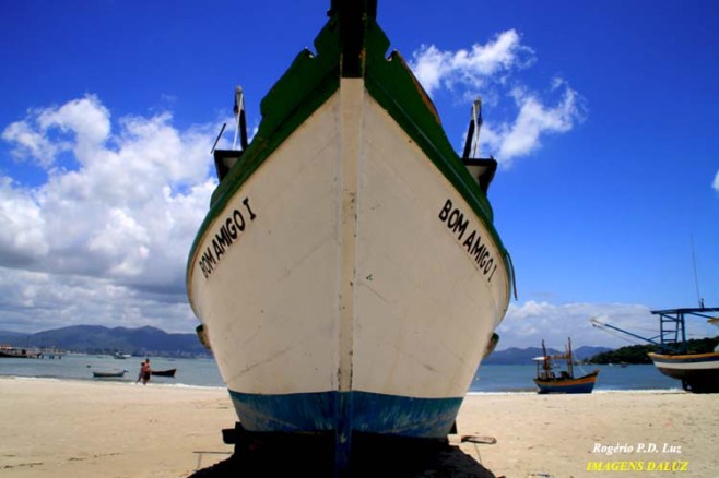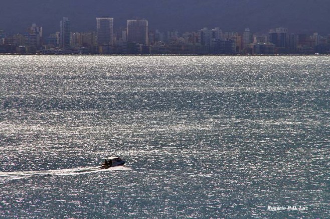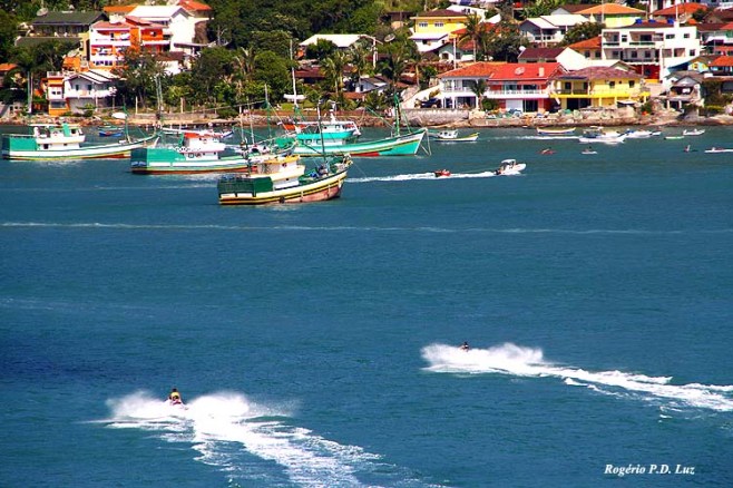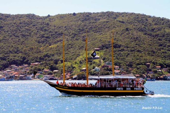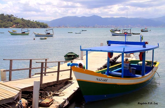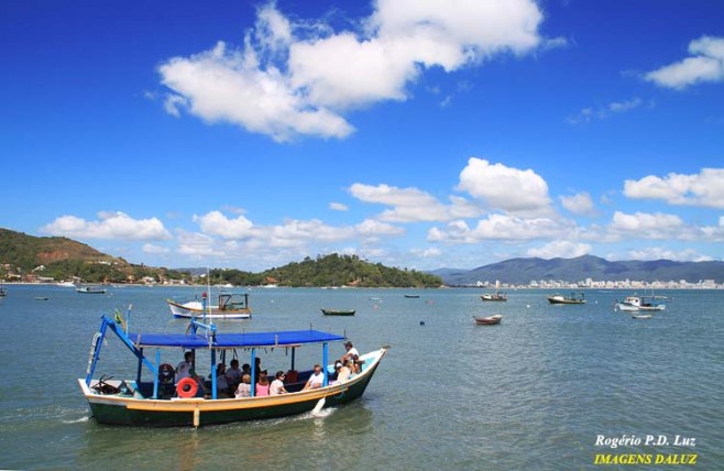O tempo estava excelente, céu azul com algumas nuvens para enfeitar as fotos, mar calmo, mas, muito calor. Bem próxima da capital do Estado de Santa Catarina, a 60 kms de Florianópolis, é uma cidade com bastante movimento de carros, em trânsito para as diversas praias na região bem como para desta localidade do pier chamada de Enseada das Garoupas. Era um festival de barcos de todos tipos, de iates a jet skis, a navegar pelas suas águas claras e azuis, muitos a circundar o Costa Victoria e as pessoas fazendo ciao. Um espetáculo lindo e gostoso de ver, por acaso, um ambiente mais alegre que na São Francisco do Sul que fica bem mais distante da capital do Estado.