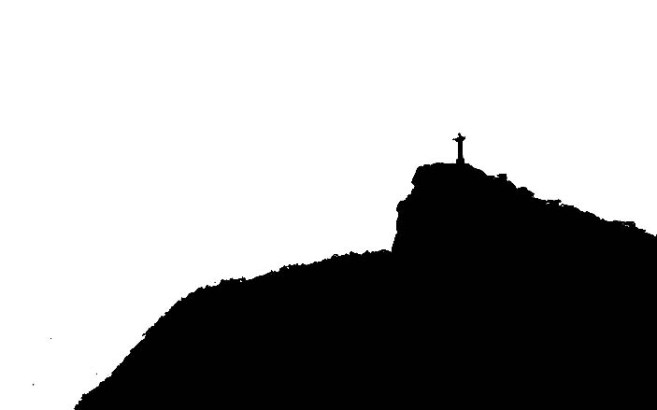O Corcovado fotografado com uso de zoom e com tratamento digital da imagem: “O Corcovado é um dos morros da cidade do Rio de Janeiro, célebre no Brasil e no mundo pela sua estátua do Cristo Redentor de 38 metros de altura.  O Cristo Redentor é um dos principais símbolos do país e oferece uma privilegiada vista panorâmica da cidade do Rio de Janeiro. Em 2003 foram concluídas as obras de instalação de elevadores e escadas rolantes no local. Antes, era preciso vencer 220 degraus para desfrutar da paisagem. No dia 7 de julho de 2007, a estátua do Cristo Redentor foi eleita em uma votação uma das 7 Novas Maravilhas do Mundo. A votação teve o patrocínio da ONU, porém, sem ter um caráter oficial.   O morro do Corcovado possui 710 metros de altura e encontra-se no Parque Nacional da Tijuca, e situa-se ao oeste do centro da cidade, mas mesmo assim pode ser observado desde longas distâncias”.