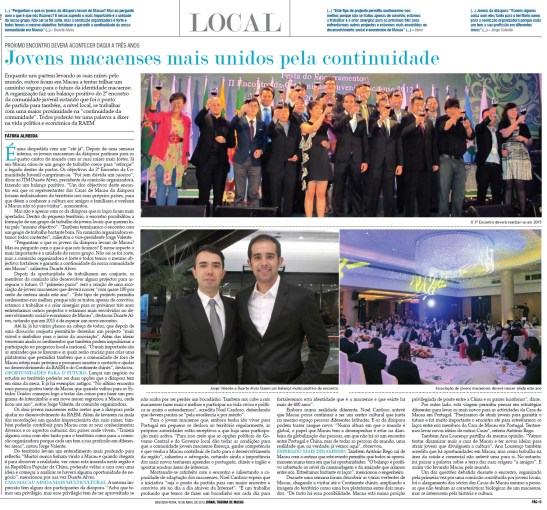 Antes do Encontro – o que foi noticiado pelo Jornal Tribuna de Macau