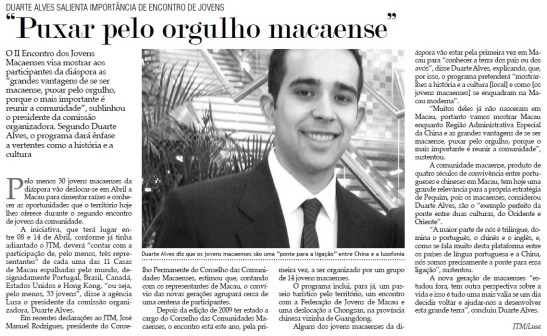 Jornal Hoje Macau – publicação conforme faculta o envio da notícia via e-mail – 10/04/2012
