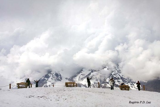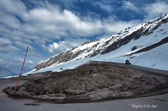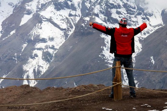 Uma das preocupações, o que ocasionou a nossa volta, um tanto prematura, é pela passagem de uma nuvem densa ou que ela fica estacionada na montanha. Dizem que a estrada chega a ficar interditada por falta de visibilidade e por segurança, e isso aconteceu quando já estavamos lá por umas duas horas. O motorista deu o alerta e saímos de lá rapidinho, procedimento tomado por outros tours, mas felizmente era uma nuvem passageira e a estrada estava livre e com visibilidade normal. Um fato interessante foi que, enquanto curtíamos a neve, houve um tremor de terra, algo habitual no Chile, o que fez a Mia sentir tonturas, mas não percebi isso. Depois nos disseram que foi um tremor de pequena escala, sem maiores consequências.