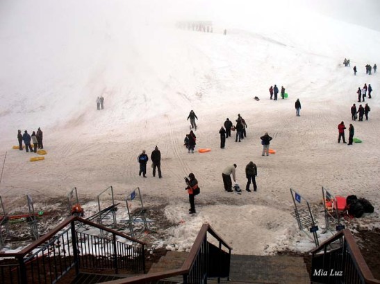 Como está tudo liberado para se divertir como quiser, é preciso tomar muito cuidado para não ser atropelado por um snowboard que vêm de todas as direções, conduzidos por turistas entusiasmados com a neve. Os snowboards podem ser alugados no início da subida das montanhas. No local não há loja para alugar esses e outros apetrechos.