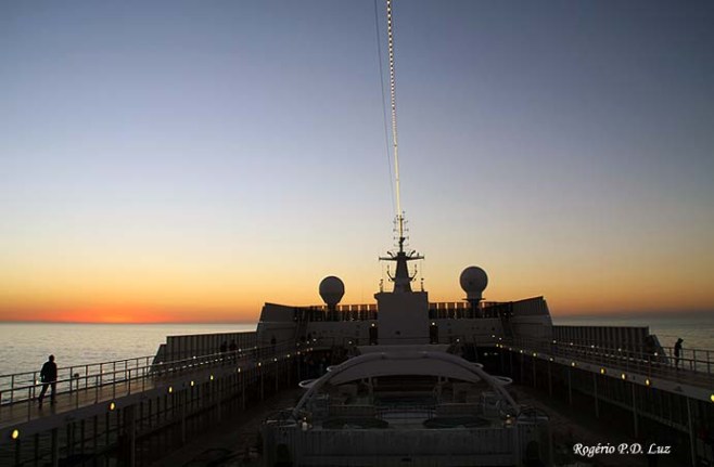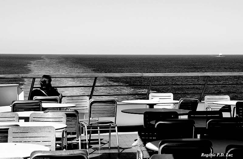 Nos cruzeiros marítimos que fiz pelos navios MSC Armonia e Costa Victoria nos Natais de 2010 e 2011, produzi várias fotos que procuravam transmitir a imagem da solidão, que o mar provoca no nosso íntimo. Quando no mar, a gente é um grão de areia naquela imensidão a provar que o mundo é redondo. O mar não mede a condição social da pessoa. Diz que somos todos iguais, quando à mercê das suas ondas, ora tranquilas ora furiosas, a embalar aquilo que chamamos de navio. Eu respeito o mar e amo essa solidão, que me traz paz de espírito.