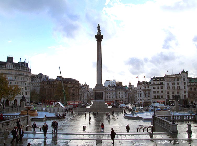 Trafalgar Square é uma praça no centro de Londres que celebra a Batalha de Trafalgar (1805), uma vitória da Marinha Real Britânica nas Guerras Napoleónicas. O nome original, na verdade, era para ser “King William the Fourth’s Square”, em homenagem ao rei Guilherme IV, porém George Ledwell Taylor sugeriu o nome Trafalgar Square. A praça tem em seu centro uma coluna encimada pela Coluna de Nelson, em homenagem ao Almirante Nelson, que liderou a Royal Navy na costa de Cádis, Espanha. (Wikipédia)