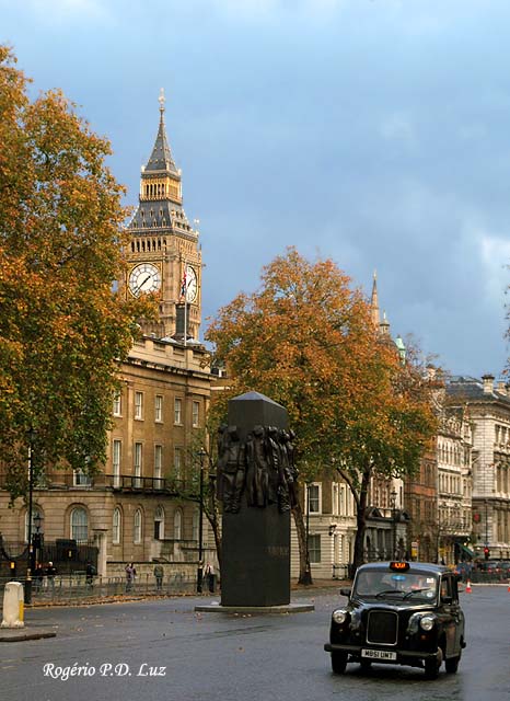 O monumento chama-se Cenotáfio ou Cenotaph erguido para homenagear os mortos da 1ª Guerra Mundial. As flores foram depositadas pela Rainha e autoridades no dia 11 de Novembro por ocasião do Remembrance Day (Dia da Memória)