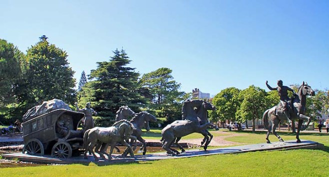Em passeios turísticos, os monumentos das fotos acima e abaixo são parada obrigatória para fotos. Simbolizam o desbravamento do Uruguai para povoamento.