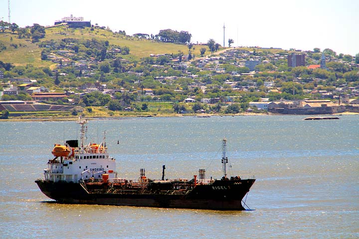 Na partida do navio rumo a Porto Belo, em Santa Catarina, Brasil, às 17 horas, pode-se contemplar a cidade e seu prédio modernista do setor de Telecomunicações.